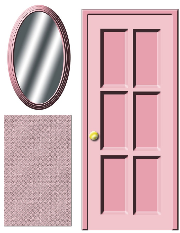 Pink Dollhouse Door, Mirror & Rug