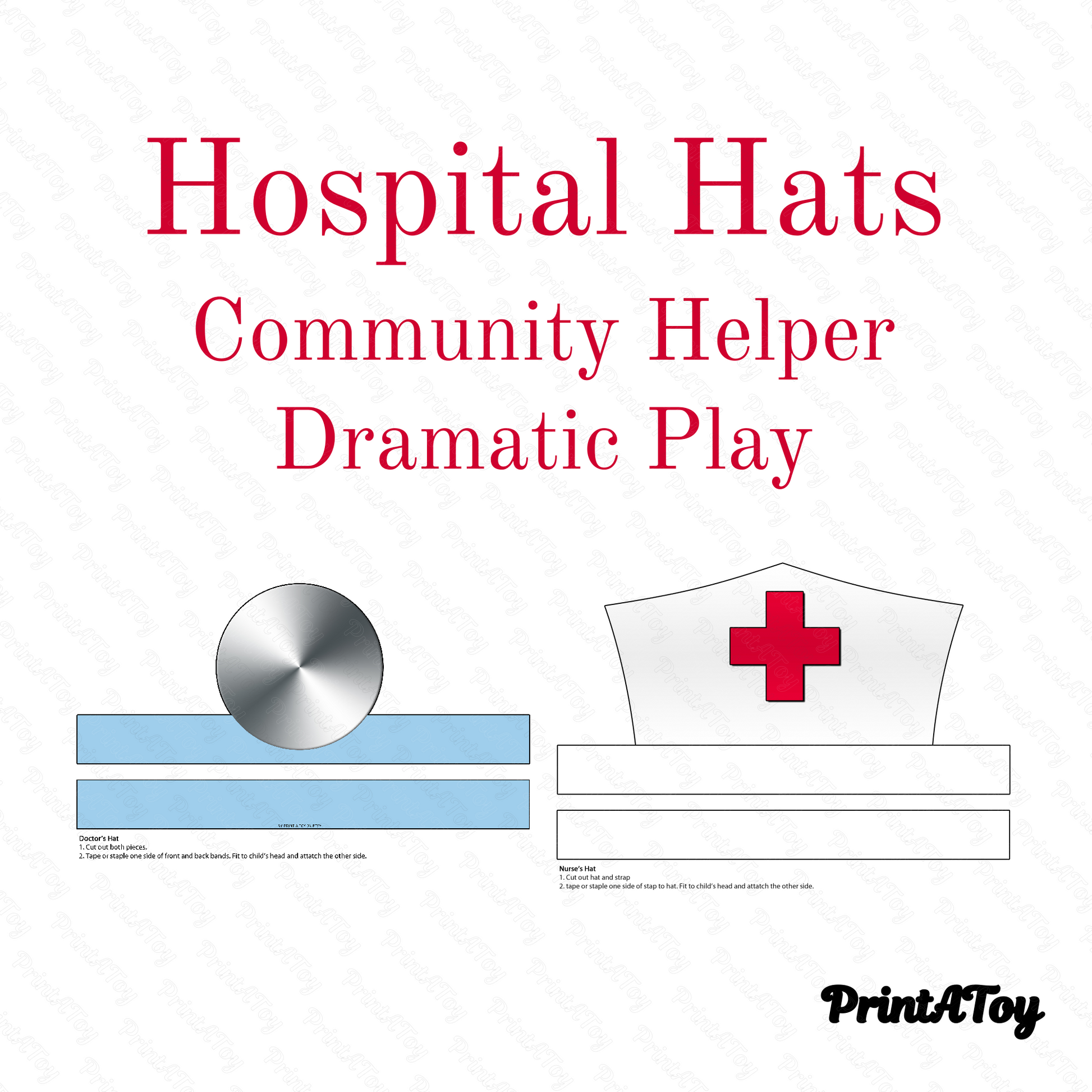 Printable Hospital Community Helper Hats – Dramatic Play Costumes