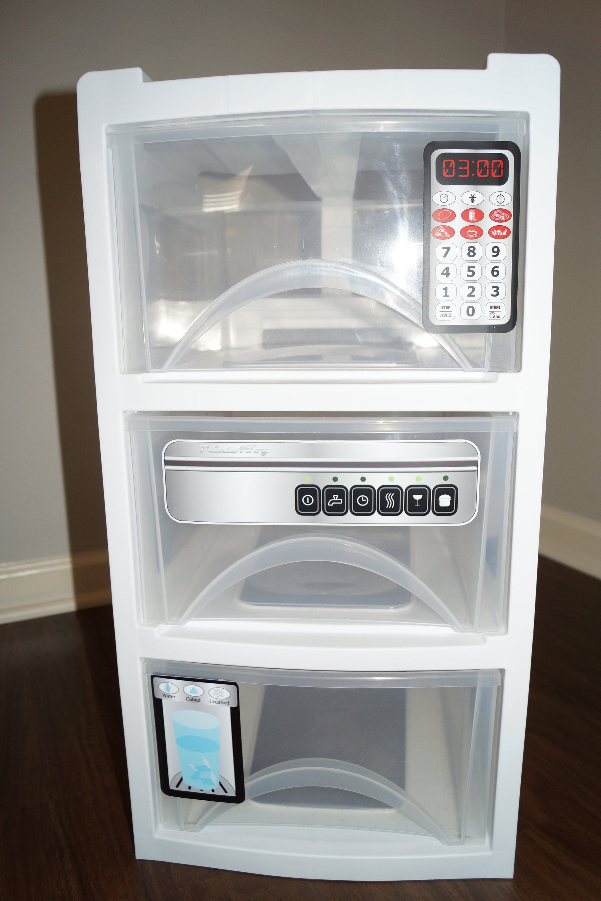 Use this vinyl decal sticker to turn your toy box, cubby, cabinet, tote, or old furniture into a play kitchen refrigerator your children will love. Making a DIY play kitchen is as easy as peel and stick!